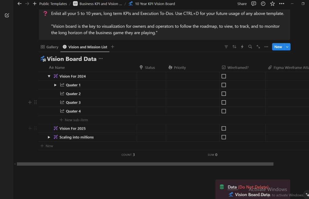 Notion Horizon Bird View Dashboard- "10 Year Mission and Vision Board" For Business and Professionals, Lite (Free)