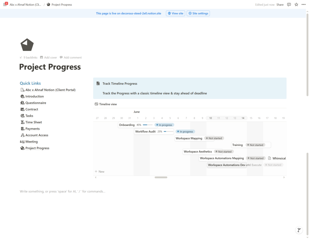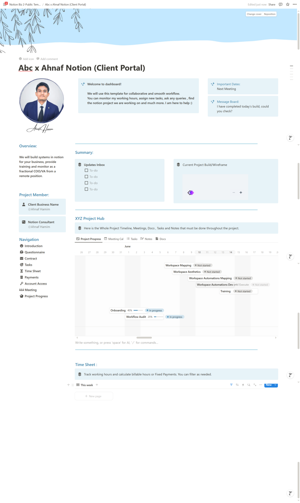 Say goodbye to scattered notes, missed deadlines, and clunky communication. With the Notion Client Portal, you’ll have all the tools you need to manage projects efficiently, track progress effortlessly, and maintain a professional image your clients will love.